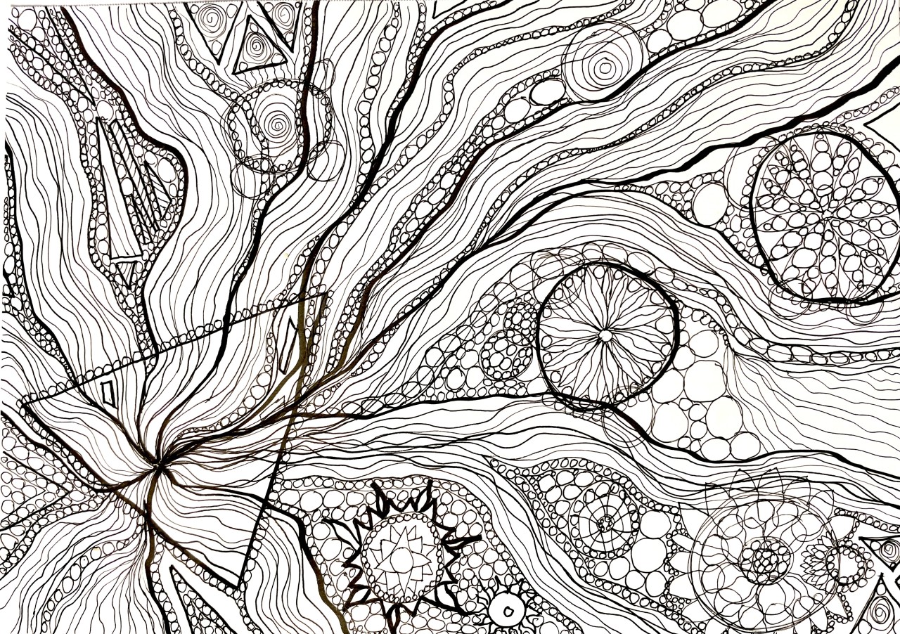 Intentional Drawing is most often an abstract form of drawing. You do not need to have any skills besides being able to hold a marker. You are coached in the drawing process and will receive expert guidance.
